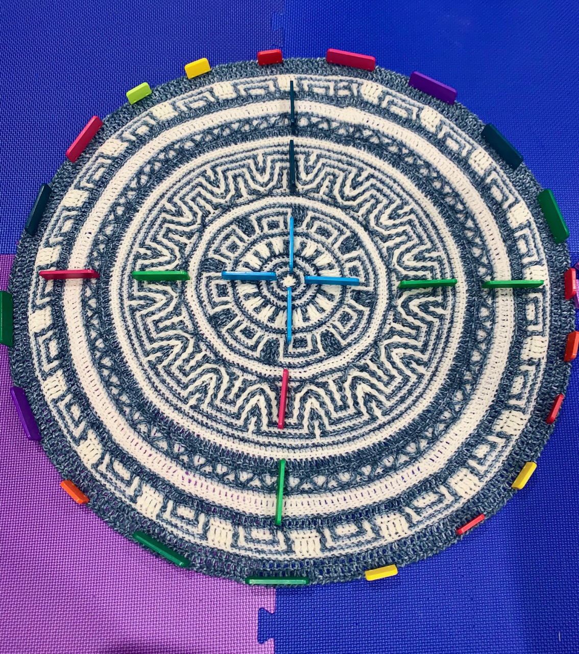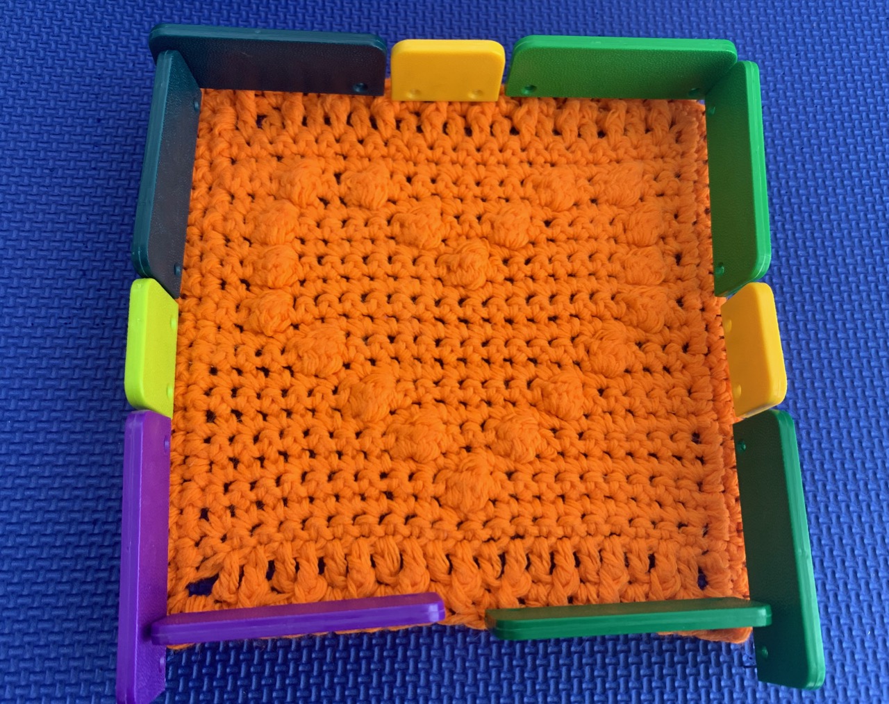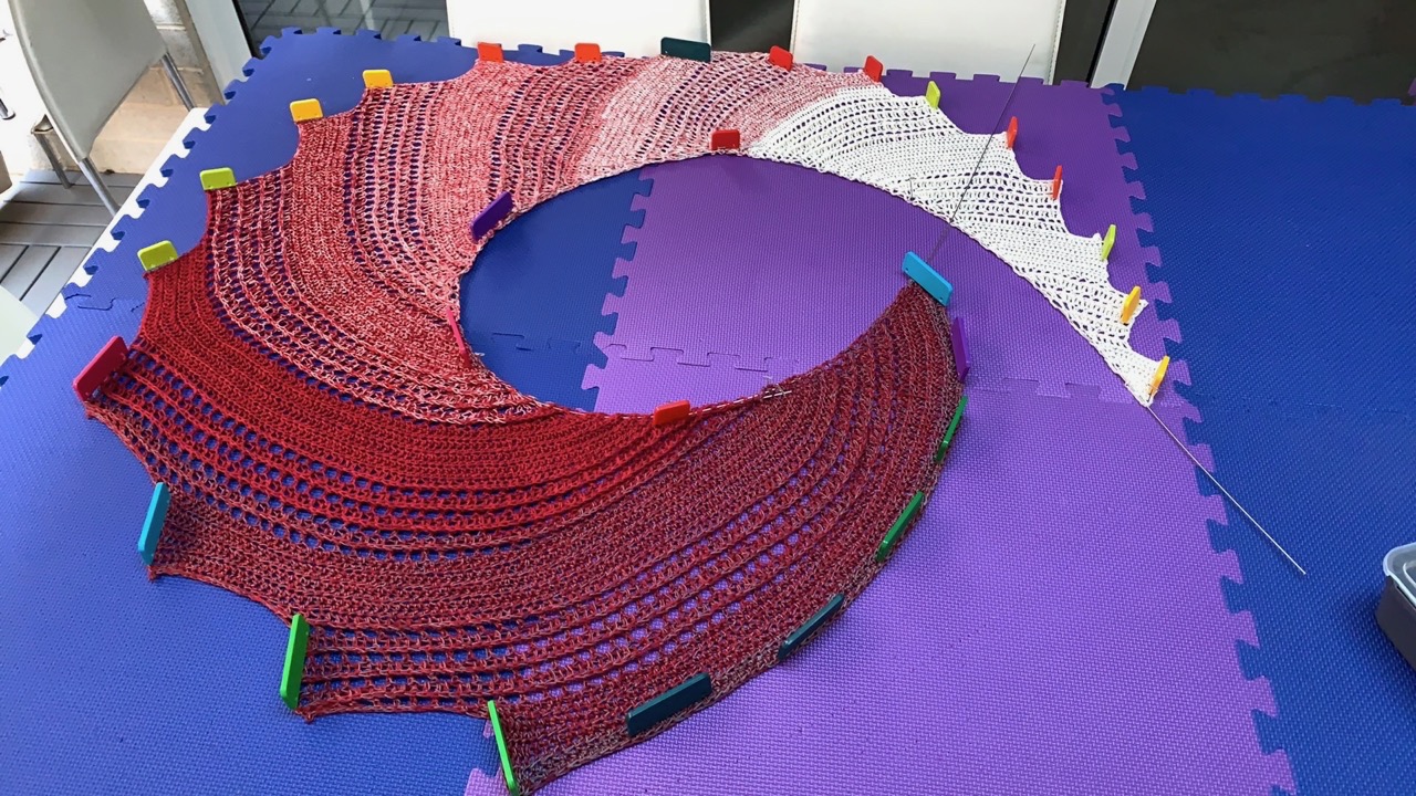 Wet blocking involves soaking the items in warm water, then shaping and pinning them in place – either using a blocking board, or using a foam mat and pins. Once the fabric is pinned in place, it is left alone until it is completely dry. This process sets the “memory” of the fibres resulting in straight, even edges and a lovely finish.