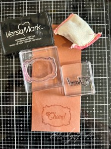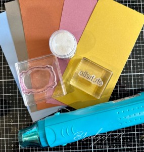 Using a scrap piece of your coloured cardstock, stamp your sentiment using Versamark and heat emboss with white embossing powder. Punch or die cut your label shape. I used the Lasting Label Punch and used the Embossing Additions Toolkit to keep my workstation clean. If you find using embossing powders messy, check out this kit in the video!