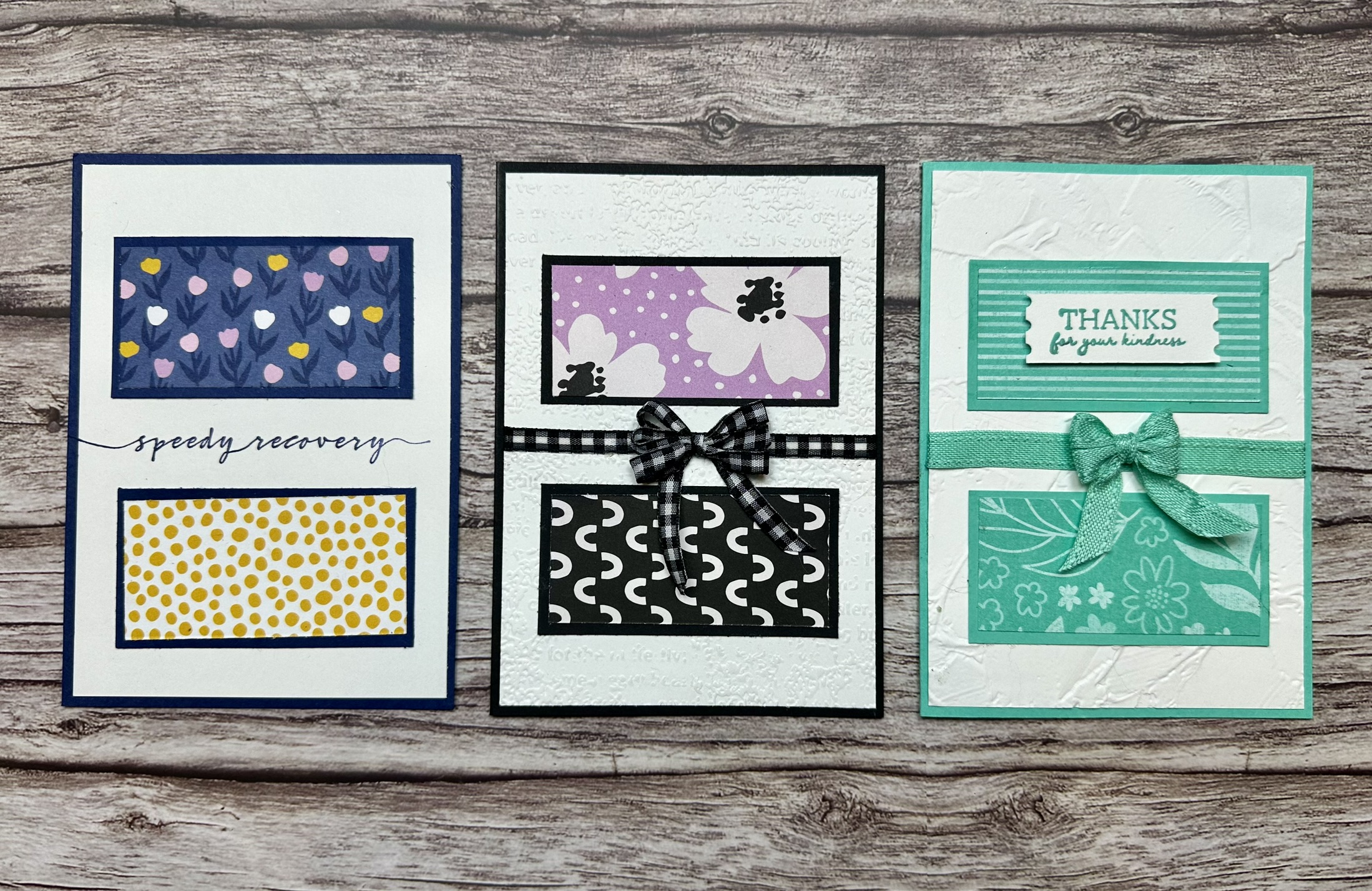 - Add additional optional items such as bows, adhesive embellishments, die cuts and stamped sentiments, or sentiments stamped directly on the card front.