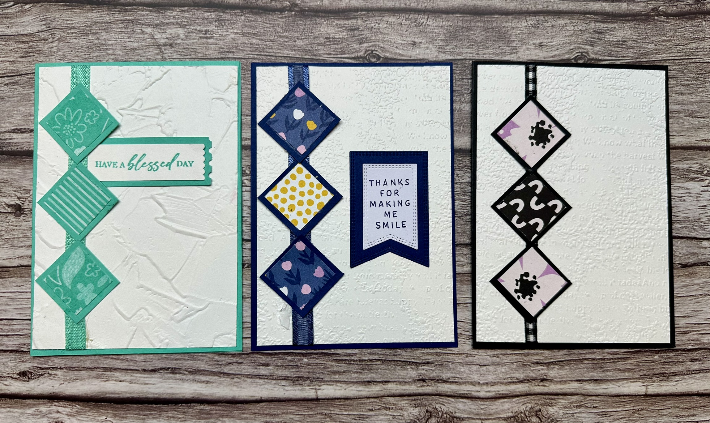 - Optional: 3D emboss card fronts, or stamp background images, and/or add ribbon.