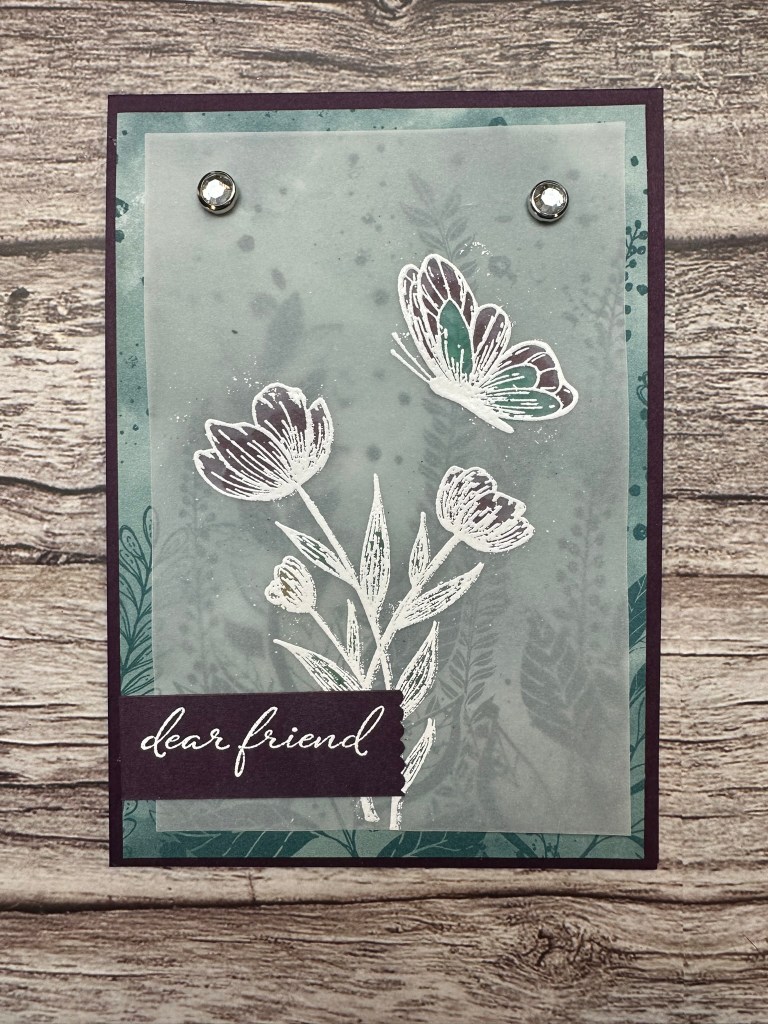 This is a fabulous and easy technique for cardmaking! Grab some vellum, your favourite embossing powder and heat tool, and some alcohol markers and add a new dimension to your cardmaking. I recommend Stampin’ Up! products, of course, but you can use any products you already have.
