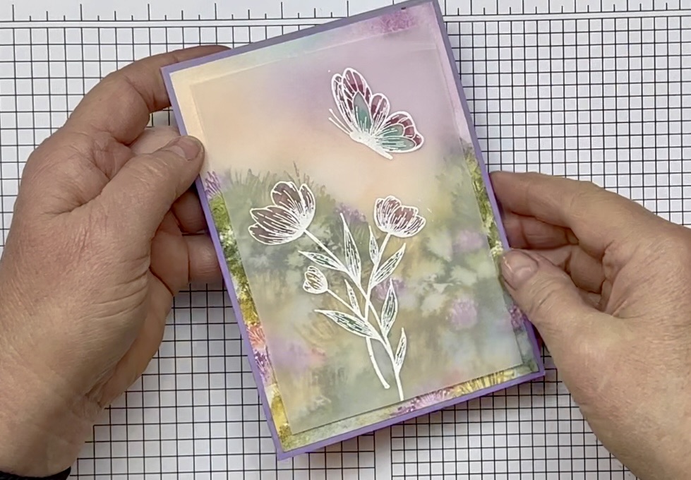 - Affix the vellum to the card front – see video for options to invisibly affix the vellum which include: