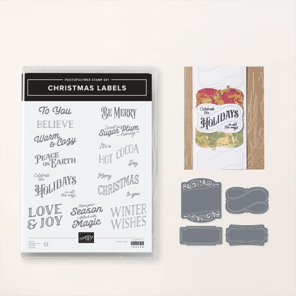 This Peace on Earth Christmas card design has been created using the Nests of Winter Suite from Stampin’ Up!. The centrepiece of the suite is the Winterly Tree Tops stamp and die bundle and the gorgeous Designer Series Paper. The great thing about this suite is that it doesn’t have to be used for just Christmas. It has non-Christmas sentiments and the designs are so versatile! The dies also cut out two of the birds from the designer series paper included in the suite! I’ve used a fairly common card layout to showcase the beautiful DSP but, of course, this design can be used for any occasion by mixing up the colours, papers, and embellishments! The other bundle I used is the Christmas Labels stamp and die bundle. This bundle creates some great ‘old world’ sentiments and labels and I knew it would be the perfect partner for Nests of Winter!