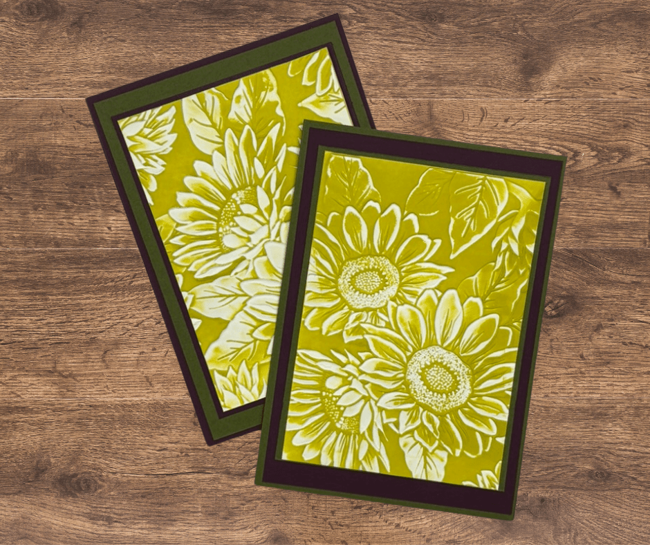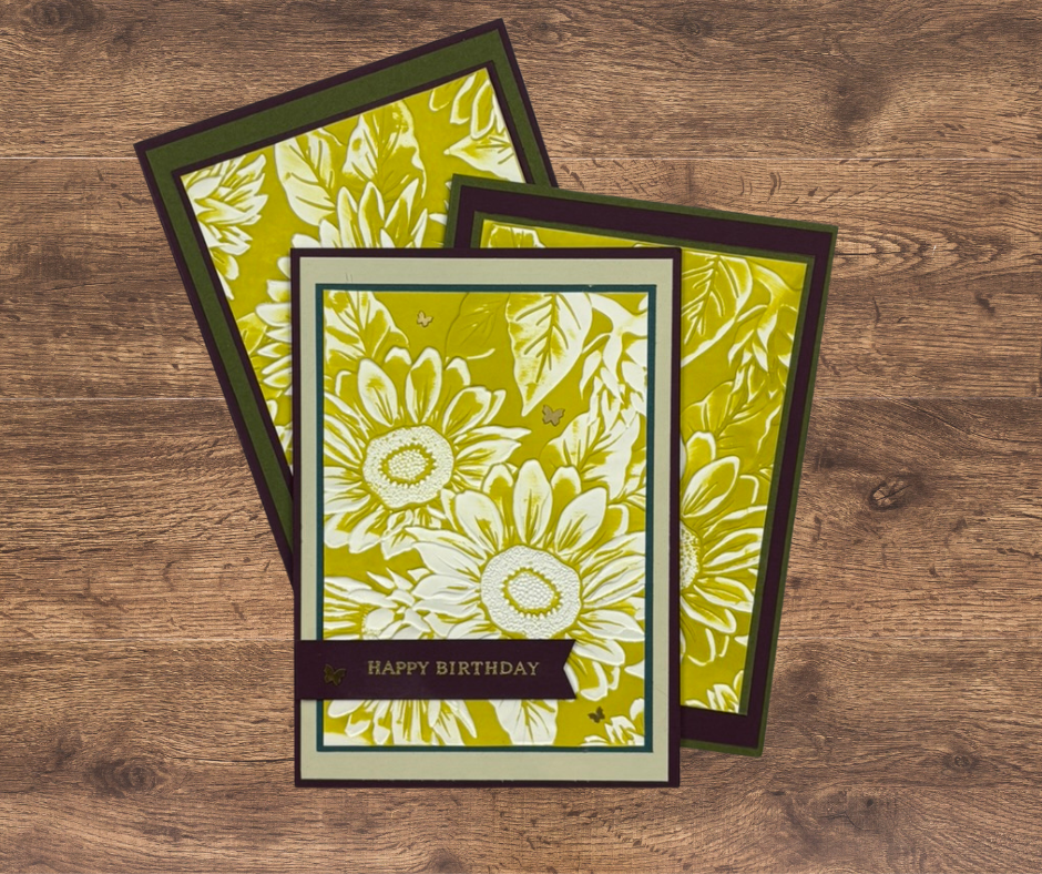 Here’s a great technique you can use with any embossing folder and an ink pad to make a very quick card front. I have used the brand new Sunflower 3D Embossing Folder and the new Darling Duckling ink pad from the 2025-2027 InColor Collection from Stampin’ Up!