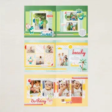 Basically, the Scrapbooking Workshop Kit has everything you need for 3 projects. Each project is a 2-page spread. The kits include 12×12 Cardstock, 12 x 12 Designer Series Paper, Stickers and/or Cut Outs, and sometimes embellishments. The kit on it’s own is a complete kit. You will just need some basic tools which I’m sure you already have to go with it. The kit also has comprehensive instructions – including how to cut up the DSP – and some photo placement cards so you can arrange your layout without getting finger prints all over your photos!