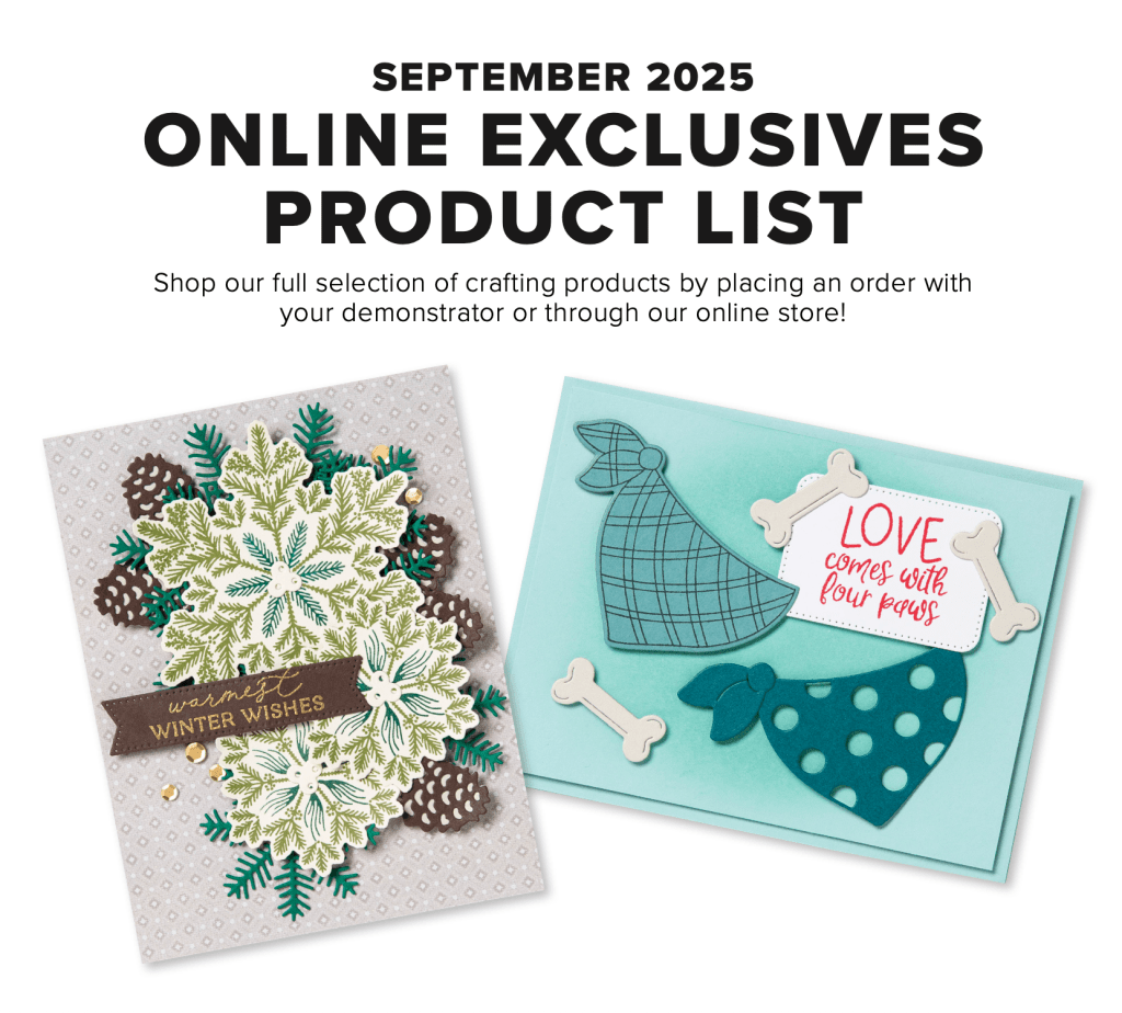 In this announcement, you will find links to download or browse the Mini and the Online Exclusive products. If you don’t want to browse the catalogues, I have also included two supply lists that contain all products offered in each with links to purchase them. Happy Shopping !